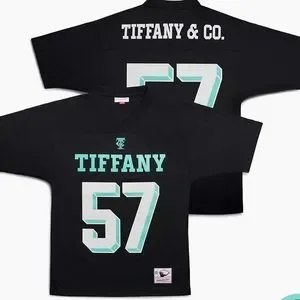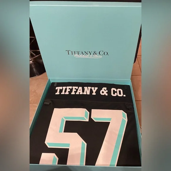 The jersey also features an interlocking Tiffany & Co. monogram inspired by a design from The Tiffany authentic NFL® and Mitchell & Ness patches.