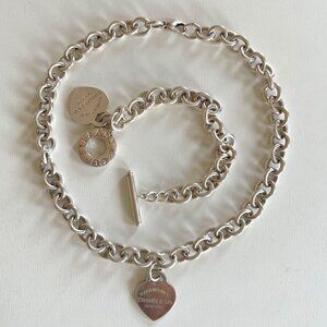 Tiffany & Co. 925 Necklace And Bracelet. Approx. measurements: Necklace 15" inches and 1/2" in total including clasp, bracelet 6" inches and 1/2"