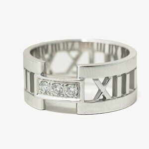 Tiffany & Co. Atlas 18K White Gold & Diamond Roman Time Ring