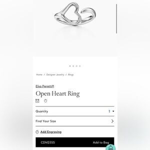 In excellent preowned condition authentic Tiffany & Co. Elsa Peretti open heart ring in solid sterling silver.