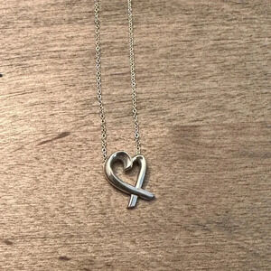 Elegant Tiffany & Co. silver heart necklace. Perfect for adding a touch of sophistication to any outfit.