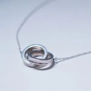 Tiffany & Co. silver interlocking rings necklace with delicate chain in sterling silver. Includes original dustbag