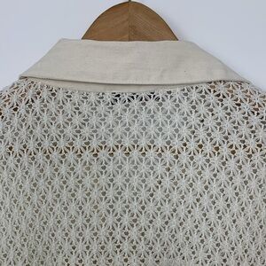 Tiffany & Tomato Knitted Crochet Denim Patch Blouse Shirt Top Sz S