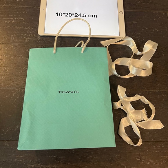 Tiffany&Co. blue white empty shopping bag tote storage decoration with 2 ribbons