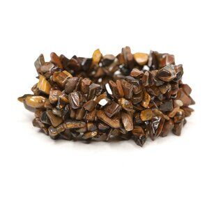 Tiger Eye Chip Stone Bracelets x 3 Stretch Brown Classic Natural Gemstone