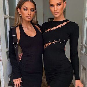 Tiger Mist Black Emsie Bodycon Lace Up Dress in S