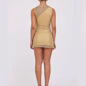 Shimmer in style with this elegant gold dress. Perfect for any occasion, this dress offers a chic and sophisticated look.