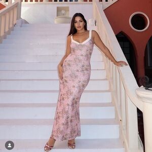 Tiger Mist Pink Sheath Maxi Dress Sweetheart Neckline size M