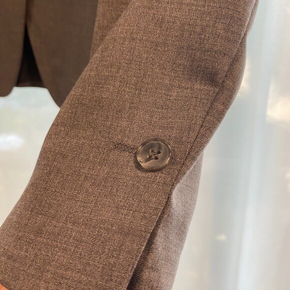 Classic single breasted grey wool blazer, great to dress up a casual look. Very well tailored, excellent condition. Hits around hip.