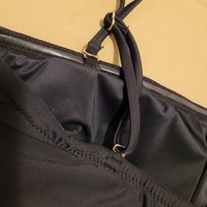 A sleek new style, the Lauren one piece in our recycled swim fabrication. This style has removable, adjustable straps and tailsman charm at centre back neck."