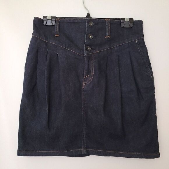 Tiger of Sweden Loretta dark blue pleated stretch jean denim mini skirt. Size Medium