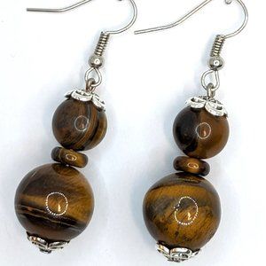 Tiger's eye earrings feature golden-brown gemstones with a captivating chatoyant effect, adding elegance and charm to various styles for both casual and formal wear.