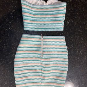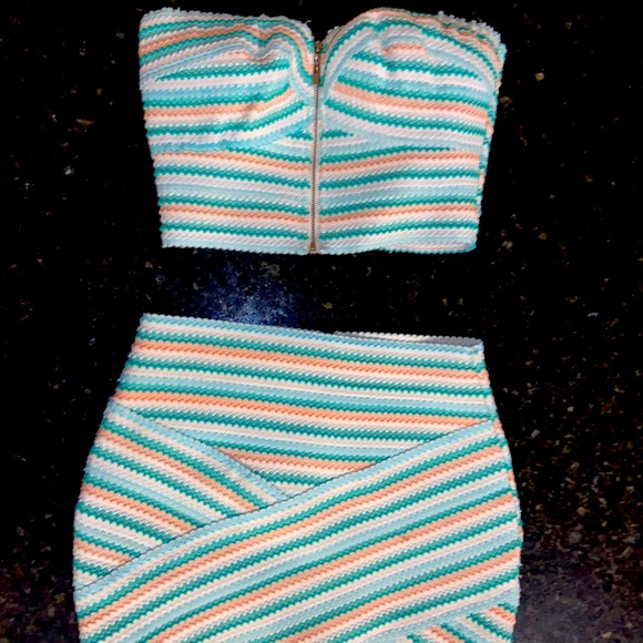 Obsessed with this 2 piece!!! Super tight bandage type fabric, unique !!!! Super sexy and flattering summer outfit!bought at a small boutique downtown Toronto