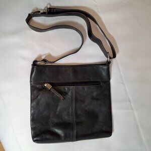 Tignanello Black Leather Messenger Shoulder Bag