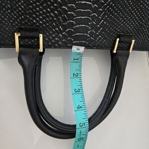 Beautiful leather handbag with a snake like black and brushed white front. Lots of pockets and space.