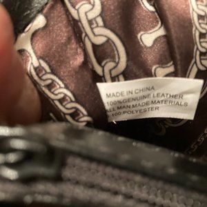 Inside: middle pocket with zipper, side pocket with zipper, place for phone, and pen