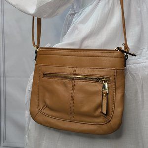 Tignanello Crossbody purse, Camel glove Leather, with flat, adjustable strap.