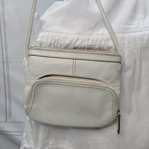 Tignanello Crossbody purse, Off White Pebble Leather, with rope style non-adjustable strap.