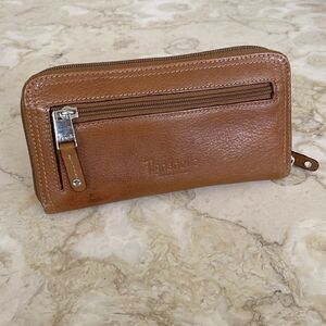 In very good preowned condition Tignanello Pebbled Leather Zip Around Accordion Wallet Clutch ID CARD Coin Zip.