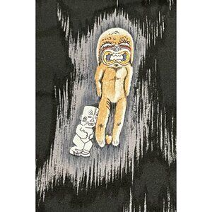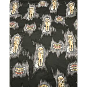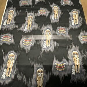 Aboriginal Boomerang Tiki God Polynesian Fabric Black Grey Man Cave 3.25 yd