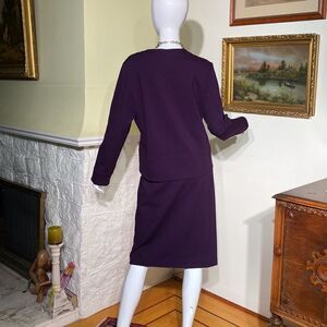 Elegant Chanel styling, fitted pull on skirt with elasticized waist and matching jacket with button front. Fabric has great structure, with stretch for a great fit and is wrinkle resistant making perfect to bring on work or holiday travel.