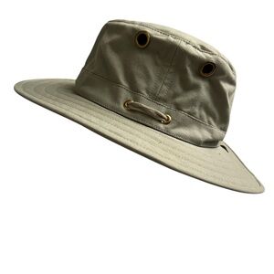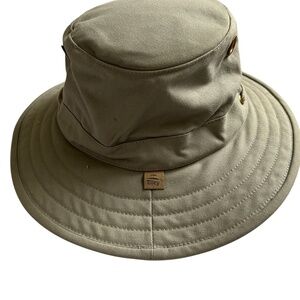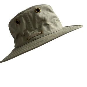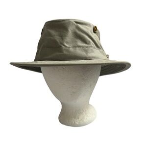 Tilley Endurables Hat Cotton 3" Brim Green Sz 7 1/2 Chin Strap Model T5 Cotton