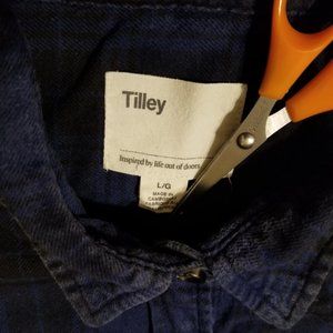 Tilley Endurables plaid/check, cotton flannel shirt/shacket, L, blue, black