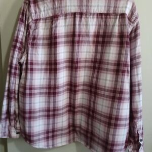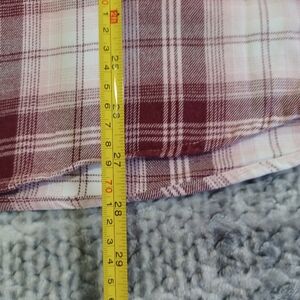 Tilley Womens XXL Burgundy, Pink And White Plaid Shirt Workwear Grunge Y2K