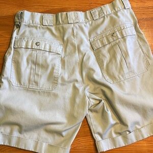 Tilley khaki cargo shorts with zip/button/velcro close and big pockets