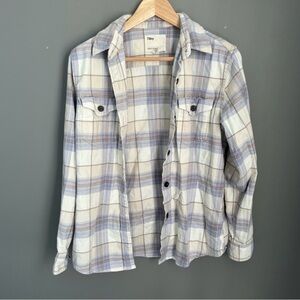 Tilly Women's soft Plaid Button Down Shirt - Cream and Blue