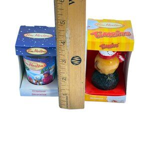 Tim Horton Ornaments Lot 2 Timbit Snowman and Holiday Cup New in Box