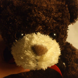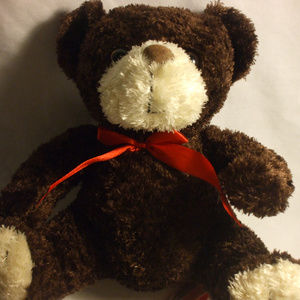 Beautiful and soft to the touch with red bow tie ribbon around his neck