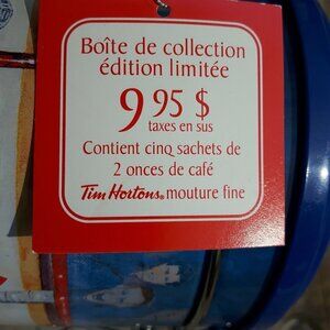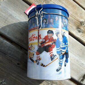 A unique find a vintage Tim Horton's coffee canister with the original tag.