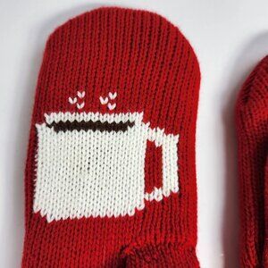 Tim Horton's Knit Mittens One Size Red Pair of Mitts Cup of Coffee Donut