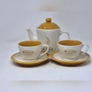 Tim Hortons Limited Edition Tea Pot With Two Matching Cups And Saucers. This Limited Edition Tea Set Is In Good Used Condition Showing No Chips Cracks Or Damage To Note.