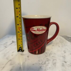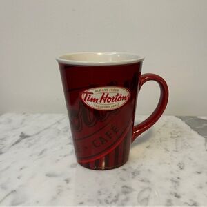 Enjoy your favorite beverage in this stylish Tim Hortons red mug. Perfect for coffee lovers. Limited edition mug. Excellent condition