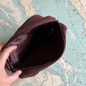 New without tag Tim Biebs brown corduroy fanny pack / bum back / waist bag with embroidered logo. Measures 10" wide, 7" tall, 2" deep.