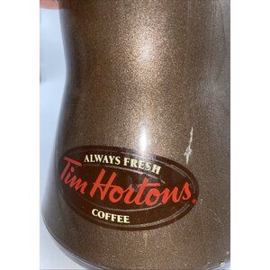 Keep your coffee hot on-the-go with the Tim Hortons Wide Base Insulated Travel Mug. This original Aladdin Thermos features a no-spill slip tip design, perfect for enjoying your favourite Tim Hortons brew without any mess. The brown mug is branded with the iconic Tim Hortons logo, making it a must-have collectible for any coffee lover. Made in the United States, this mug is ideal for those who appreciate quality and style in their beverage accessories. 20 oz.