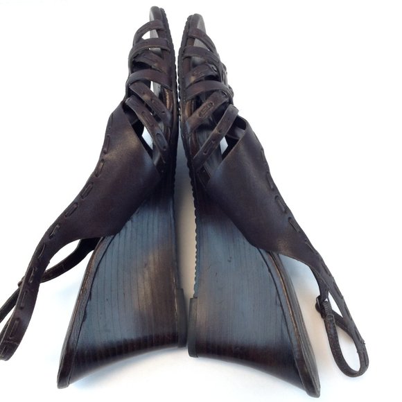 Timberland Brown Leather Strappy Slingback Wedge Heels Sandals.