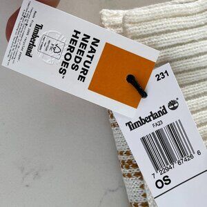 Timberland Cozy Casual Acrylic Knit Plaid Scarf Cream & Caramel Brown Sz OS NWT