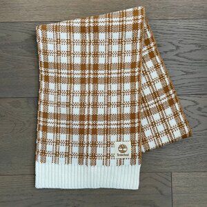 Timberland Cozy Plaid Knit Scarf Cream & Caramel Brown Sz OS - no fabric tag