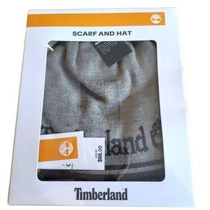 Timberland Logo Jacquard Knit Reversible Scarf and Beanie Hat Set