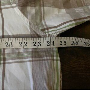 Timberland Mens short sleeve plaid tan green cotton snap closure button down top