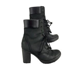 Timberland Ortholite Black Nubuck Heeled Booties Women's Size 6.5 * -Style Profile: * -Flaws: Need replacement laces * -Heel Height: 3” * -Shaft Length: 5.5” * -Closure Circumference: 8” * -I'm happy to answer questions.