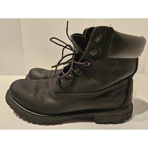 •Timberland Womens Premium 6" 8658A Black Waterproof Hiking/Winter Boot Nubuck