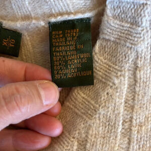 Timberland Women's (Unisex) Lambswool Oversized V Neck Sweater, Beige Size XL