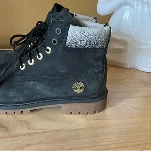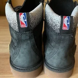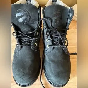Timberland boots with a Toronto Raptors logo and design. Has some scratch les on one of the toes seen in last picture.