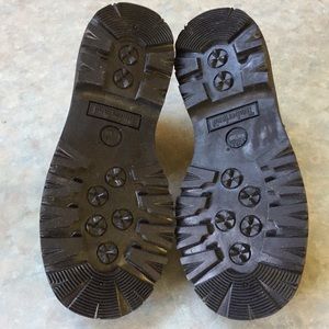 Leather rugged ankle boots with lace ties. Manmade material for lining and soles. Hardly worn and in fair condition and has some marks as pictured.