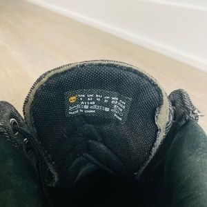 Good condition Timberland denim boots. Sole and flap a bit worn out. Otherwise sturdy shoes.