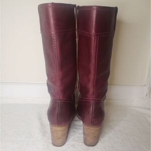 Rich 'Rudston' Merlot Wine Red Leather Round Toe Stacked Heel Mid Calf pull-on Western Riding Boots, by TIMBERLAND Earthkeepers.